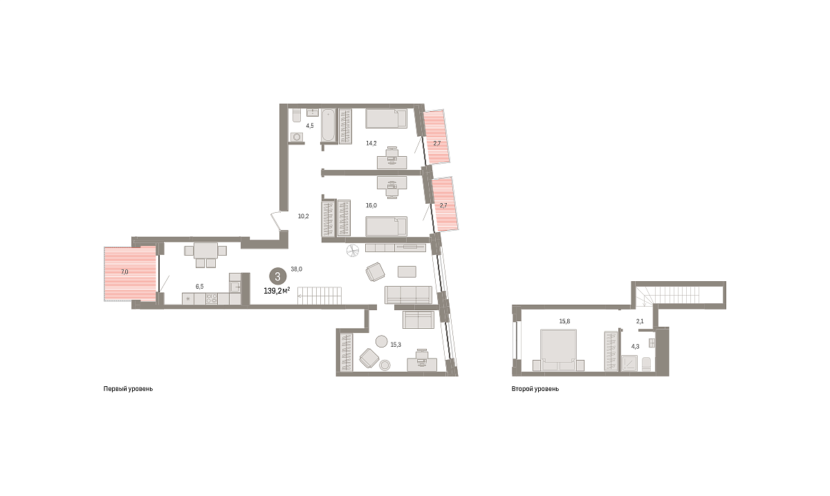 Площадь (общ/жил/кух), м2: 143.1/43.6/5.5