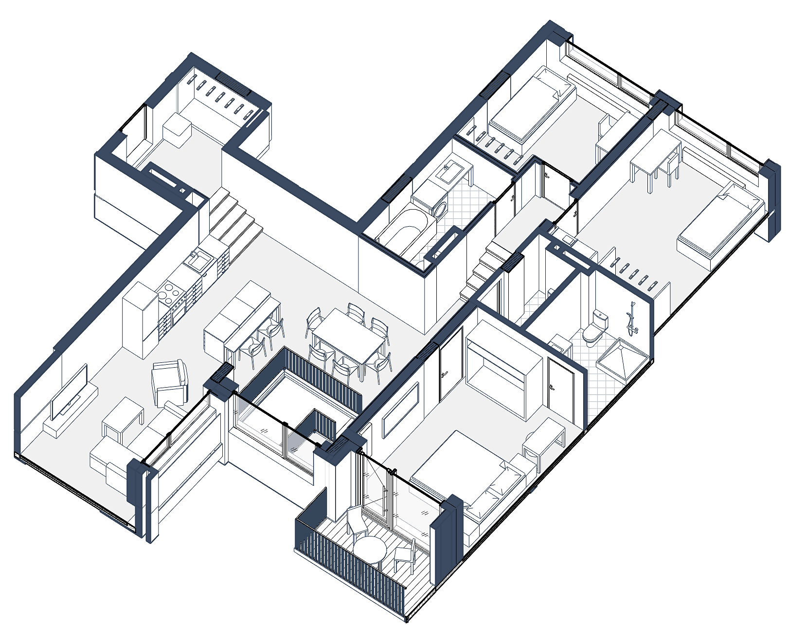 Площадь (общ/жил/кух), м2: 163.72/40.8/40.72