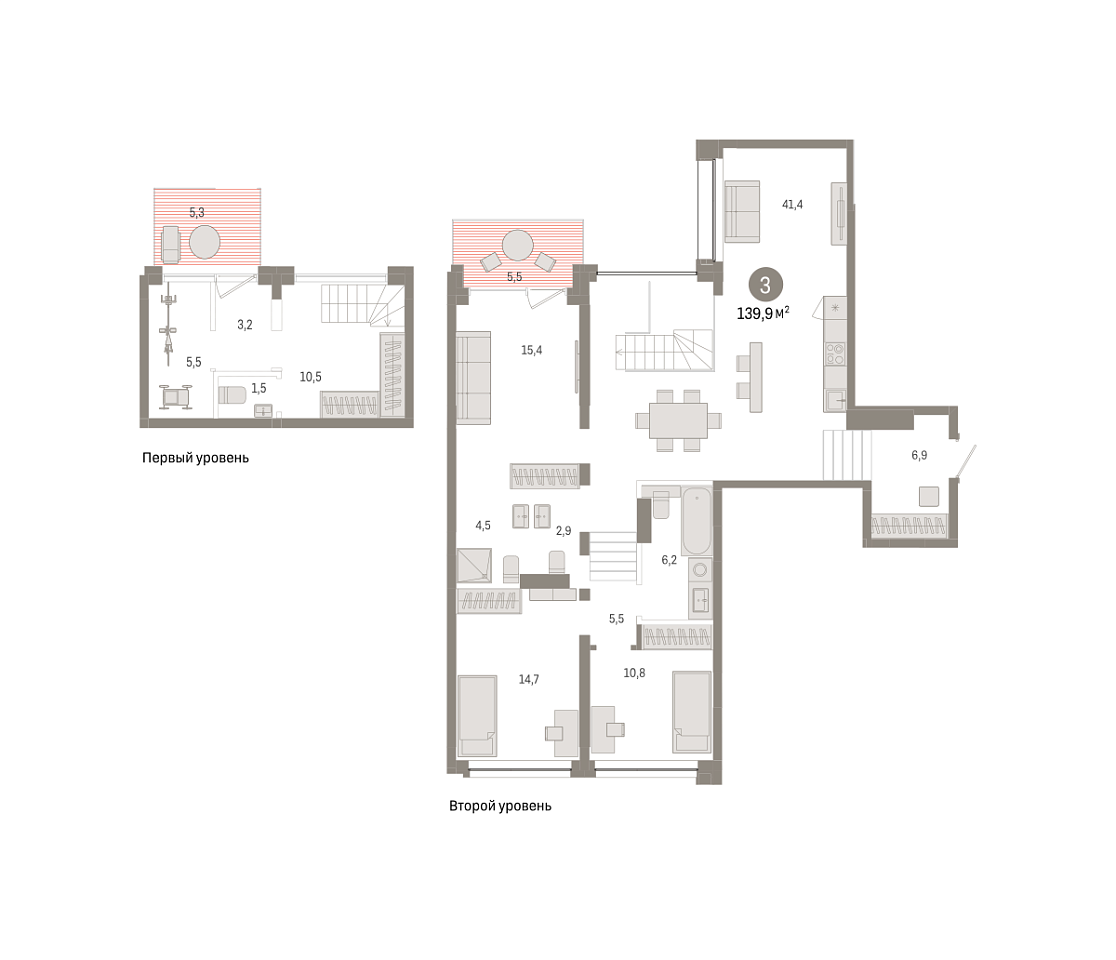 Площадь (общ/жил/кух), м2: 143.53/49.37/33.73