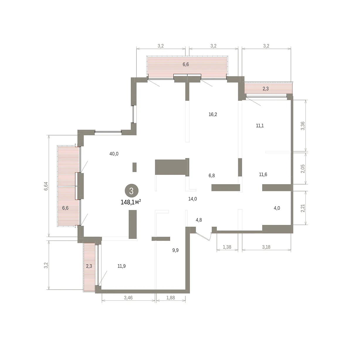 Площадь (общ/жил/кух), м2: 148.08/39.21/39.97