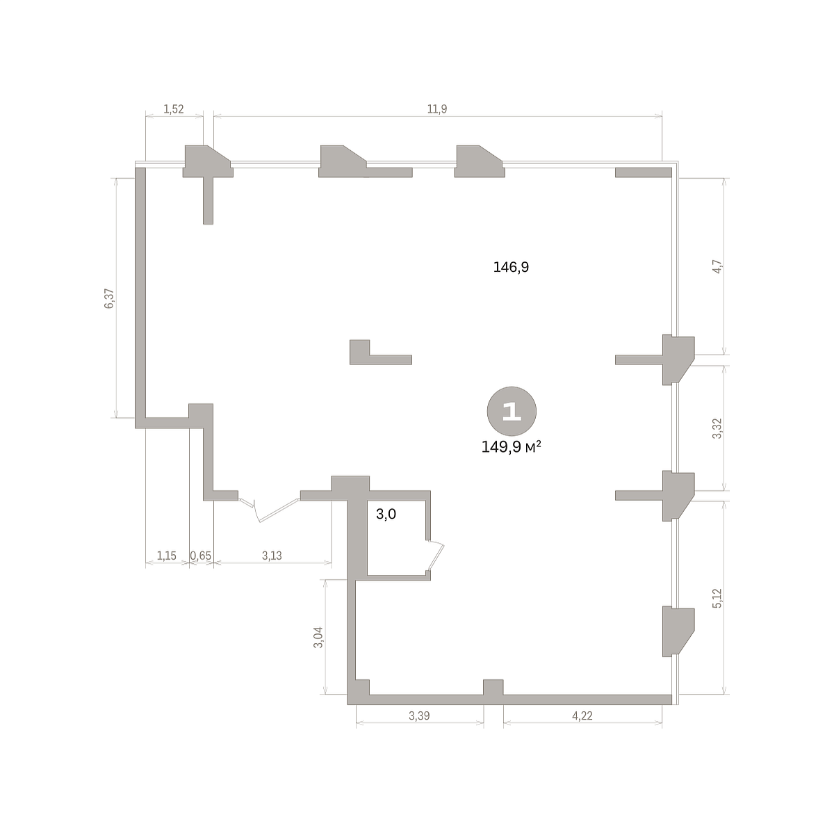Площадь (общ/жил/кух), м2: 116.7/42.9/44.3