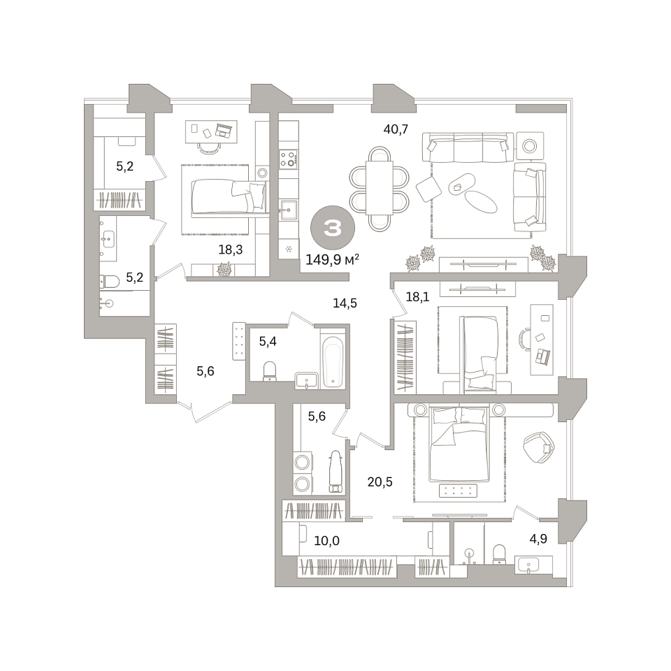 Купить новую трехкомнатную квартиру 149.89 м² на 19/25 этаже в ЖК «Гоголя 21», г. Тюмень за 65650000 ₽ | Агентство недвижимости «Вплюсе.Топ» — Недвижимость России
