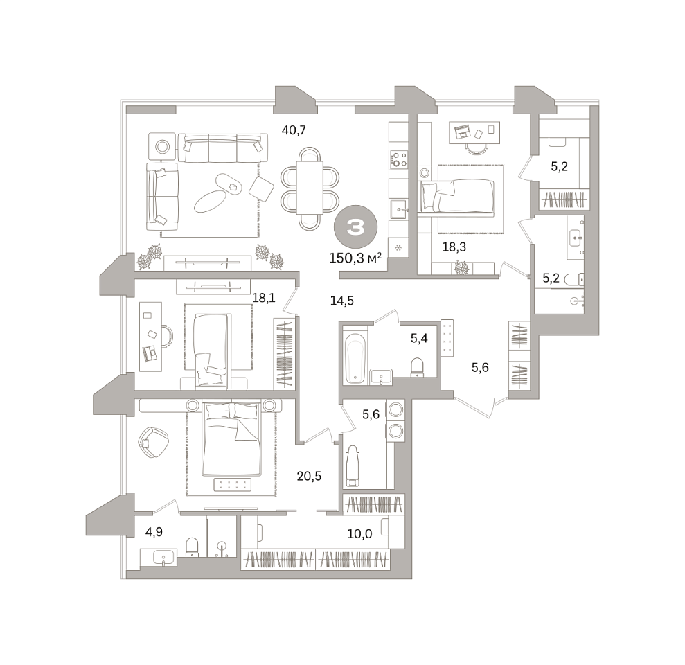 Купить новую трехкомнатную квартиру 150.32 м² на 18/25 этаже в ЖК «Гоголя 21», г. Тюмень за 69210000 ₽ | Агентство недвижимости «Вплюсе.Топ» — Недвижимость России