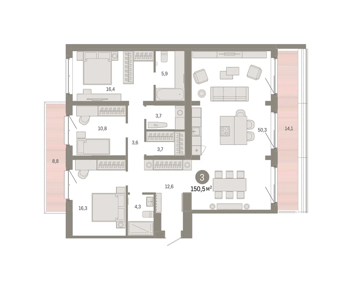Купить новую трехкомнатную квартиру 150.53 м² на 6/7 этаже в ЖК «Кварталы «На Минской»», г. Тюмень за 22130000 ₽ | Агентство недвижимости «Вплюсе.Топ» — Недвижимость России