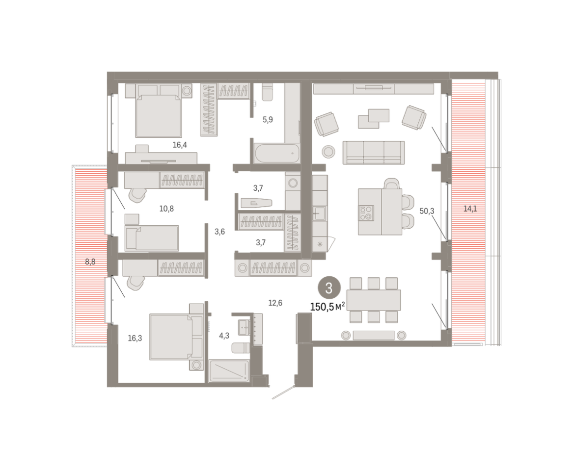 Купить новую трехкомнатную квартиру 150.53 м² на 6/7 этаже в ЖК «Кварталы «На Минской»», г. Тюмень за 25460000 ₽ | Агентство недвижимости «Вплюсе.Топ» — Агентство недвижимости "Вплюсе.Топ"