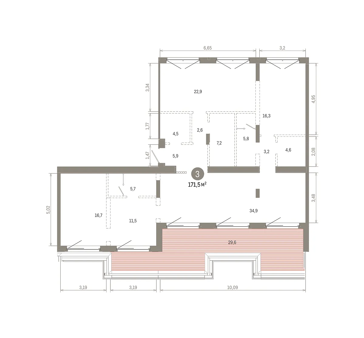 Количество комнат: 3, 171.45 кв.м.