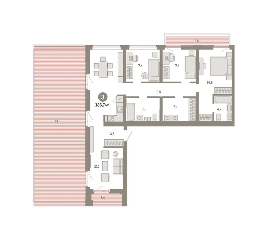 Купить новую трехкомнатную квартиру 186.65 м² на 3/8 этаже в ЖК «Республики 205», г. Тюмень за 21720000 ₽ | Агентство недвижимости «Вплюсе.Топ» — Недвижимость России