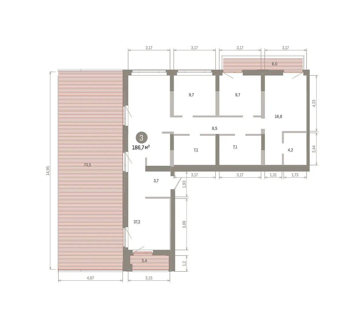 Площадь (общ/жил/кух), м2: 186.65/36.1/37.2