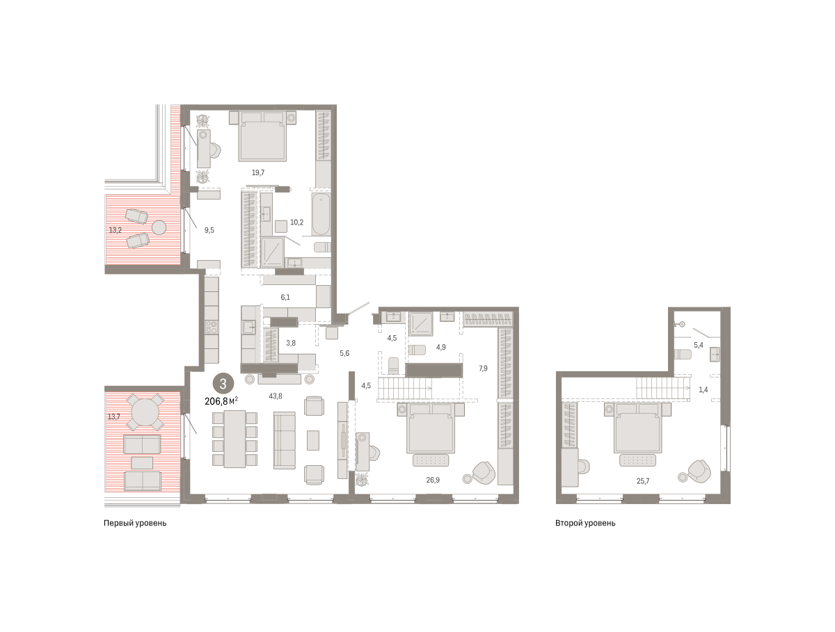 Количество комнат: 3, 206.8 кв.м.