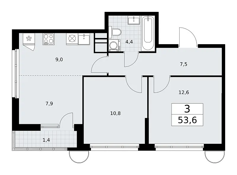 Купить новую трехкомнатную квартиру 53.6 м² на 10/10 этаже в ЖК «Родные кварталы», г. Тюмень за 19161464 ₽ | Агентство недвижимости «Вплюсе.Топ» — Недвижимость России