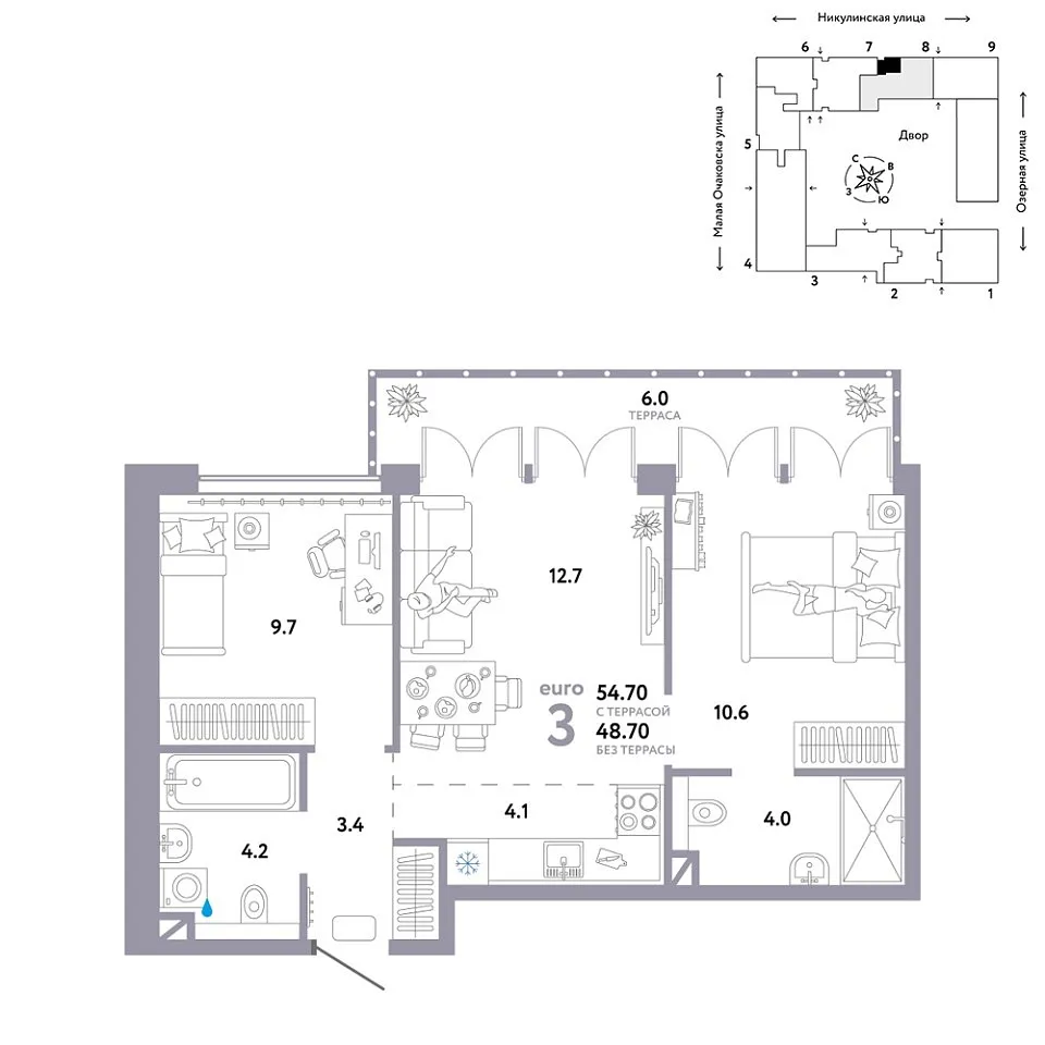 Купить новую трехкомнатную квартиру 54.7 м² на 8/30 этаже в ЖК «Страна.Озёрная», г. Тюмень за 53586667 ₽ | Агентство недвижимости «Вплюсе.Топ» — Недвижимость России