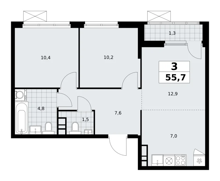Купить новую трехкомнатную квартиру 55.7 м² на 20/30 этаже в ЖК «Южные сады», г. Тюмень за 23596748 ₽ | Агентство недвижимости «Вплюсе.Топ» — Недвижимость России