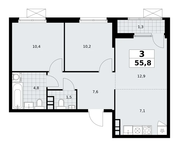 Купить новую трехкомнатную квартиру 55.8 м² на 16/30 этаже в ЖК «Южные сады», г. Тюмень за 23231214 ₽ | Агентство недвижимости «Вплюсе.Топ» — Недвижимость России