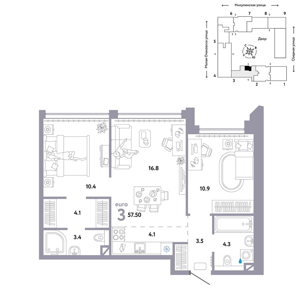 Купить новую трехкомнатную квартиру 57.5 м² на 9/30 этаже в ЖК «Страна.Озёрная», г. Тюмень за 44520000 ₽ | Агентство недвижимости «Вплюсе.Топ» — Недвижимость России