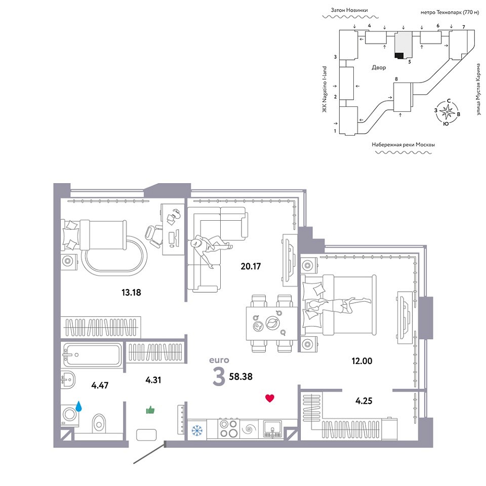Купить новую трехкомнатную квартиру 58.38 м² на 12/20 этаже в ЖК «ЖК WOW», г. Тюмень за 52120000 ₽ | Агентство недвижимости «Вплюсе.Топ» — Недвижимость России