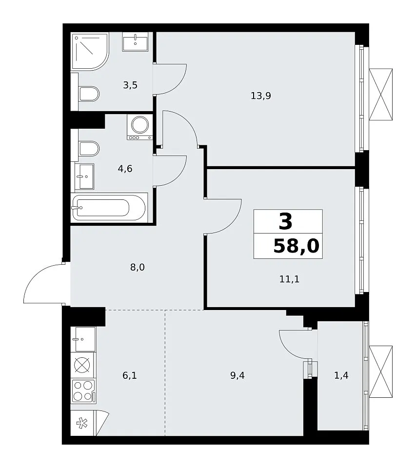 Купить новую трехкомнатную квартиру 58 м² на 14/19 этаже в ЖК «Бунинские кварталы», г. Тюмень за 20109180 ₽ | Агентство недвижимости «Вплюсе.Топ» — Недвижимость России