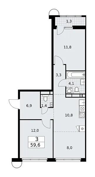 Площадь (общ/жил/кух), м2: 59.6/—/10.8