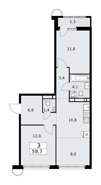 Площадь (общ/жил/кух), м2: 59.7/—/10.8