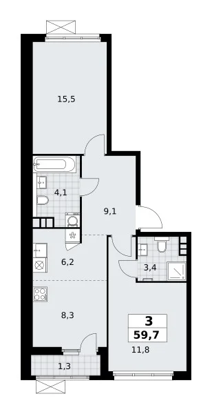 Купить новую трехкомнатную квартиру 59.7 м² на 10/30 этаже в ЖК «Южные сады», г. Тюмень за 24635802 ₽ | Агентство недвижимости «Вплюсе.Топ» — Недвижимость России