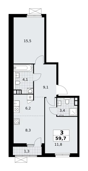 Площадь (общ/жил/кух), м2: 59.7/—/6.2