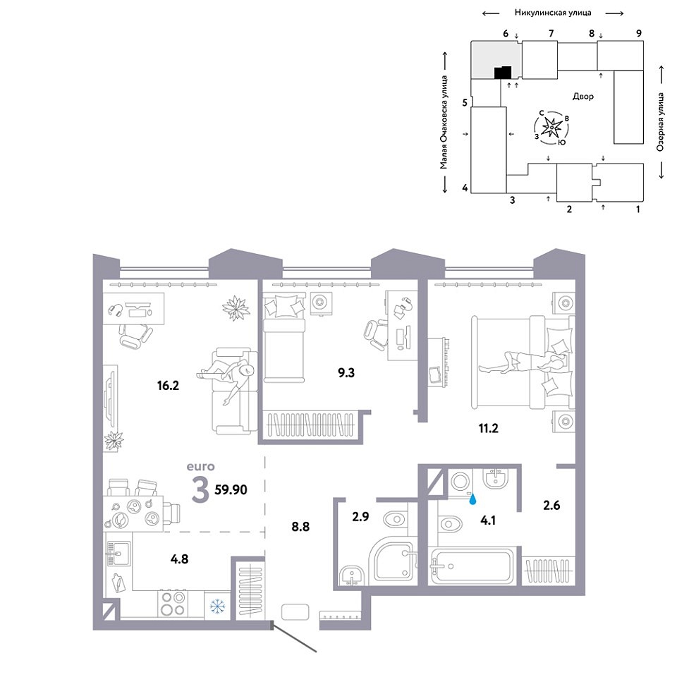 Купить новую трехкомнатную квартиру 59.9 м² на 29/30 этаже в ЖК «Страна.Озёрная», г. Тюмень за 41853333 ₽ | Агентство недвижимости «Вплюсе.Топ» — Недвижимость России