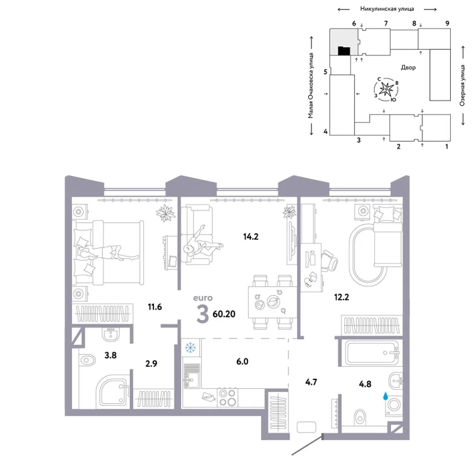 Купить новую трехкомнатную квартиру 60.2 м² на 21/30 этаже в ЖК «Страна.Озёрная», г. Тюмень за 33186667 ₽ | Агентство недвижимости «Вплюсе.Топ» — Недвижимость России