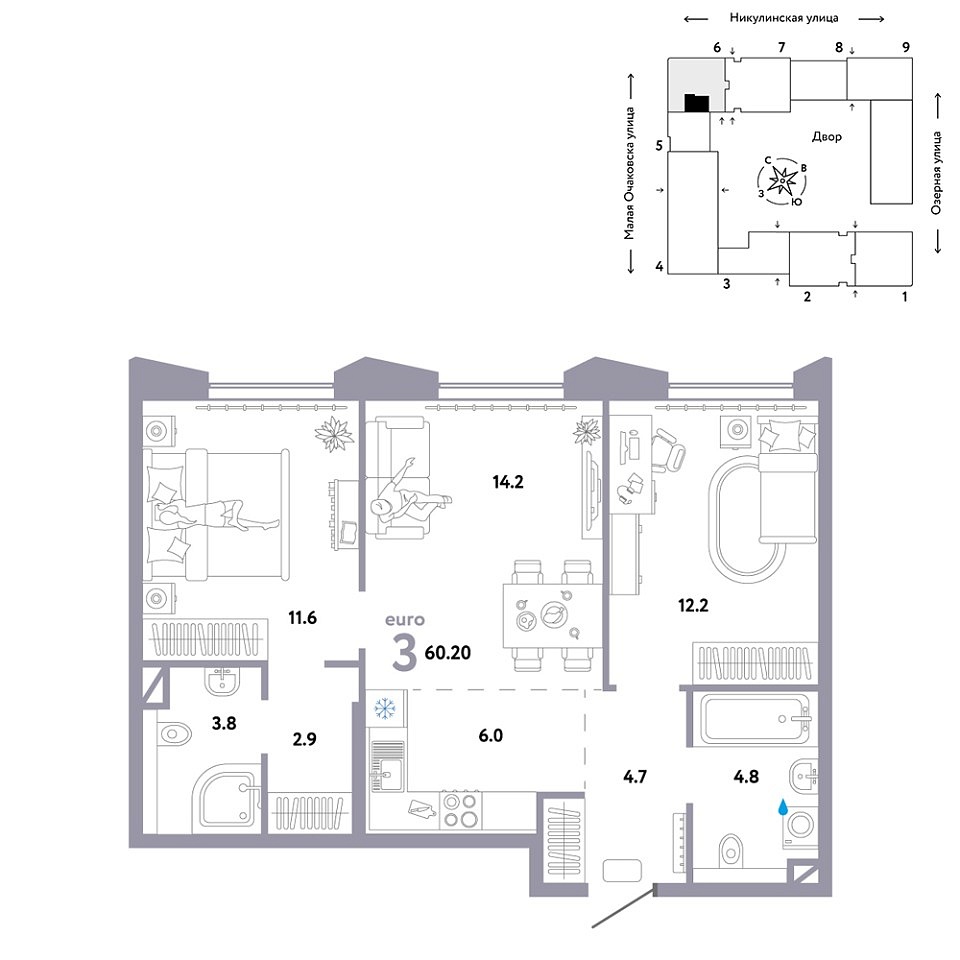Купить новую трехкомнатную квартиру 60.2 м² на 25/30 этаже в ЖК «Страна.Озёрная», г. Тюмень за 35720000 ₽ | Агентство недвижимости «Вплюсе.Топ» — Недвижимость России