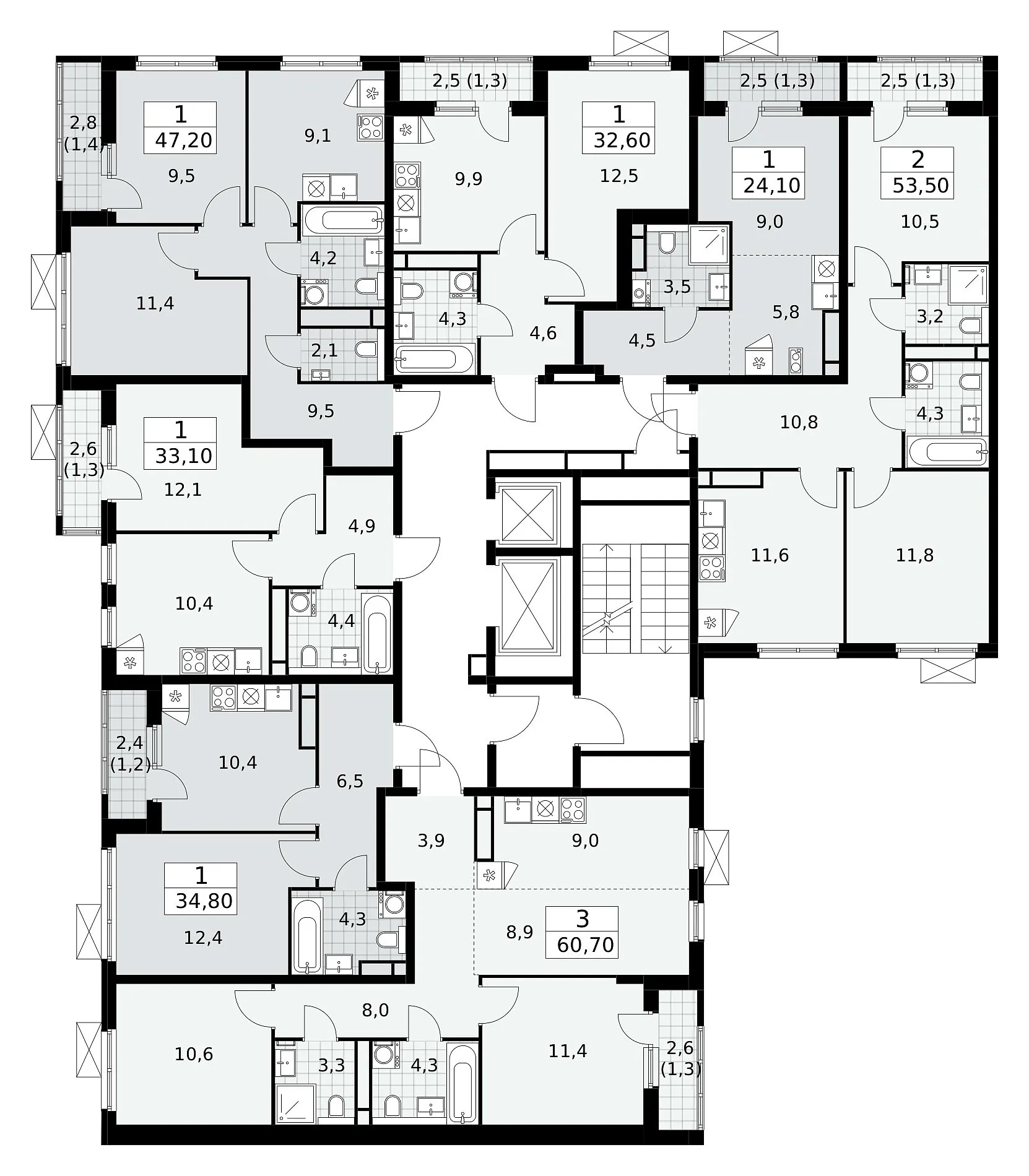 Площадь (общ/жил/кух), м2: 63.2/—/5.3