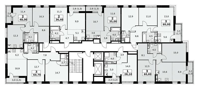 Площадь (общ/жил/кух), м2: 60.6/—/6.2