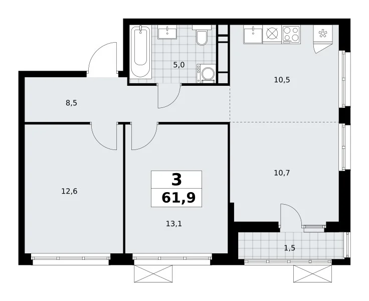 Купить новую трехкомнатную квартиру 61.9 м² на 11/30 этаже в ЖК «Южные сады», г. Тюмень за 26370638 ₽ | Агентство недвижимости «Вплюсе.Топ» — Недвижимость России