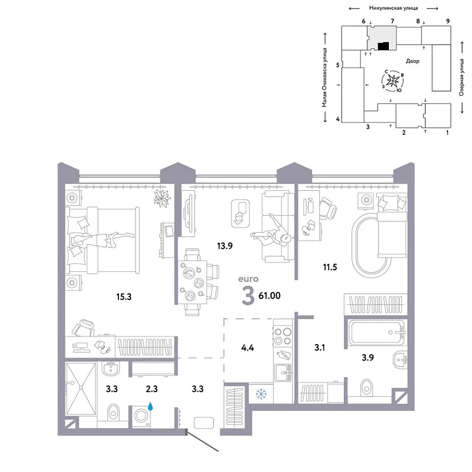 Купить новую трехкомнатную квартиру 61 м² на 27/30 этаже в ЖК «Страна.Озёрная», г. Тюмень за 45986667 ₽ | Агентство недвижимости «Вплюсе.Топ» — Недвижимость России
