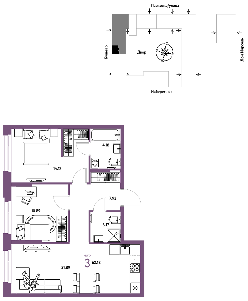 Купить новую трехкомнатную квартиру 62.18 м² на 4/24 этаже в ЖК «Европейский берег 2.0», г. Тюмень за 11688889 ₽ | Агентство недвижимости «Вплюсе.Топ» — Недвижимость России