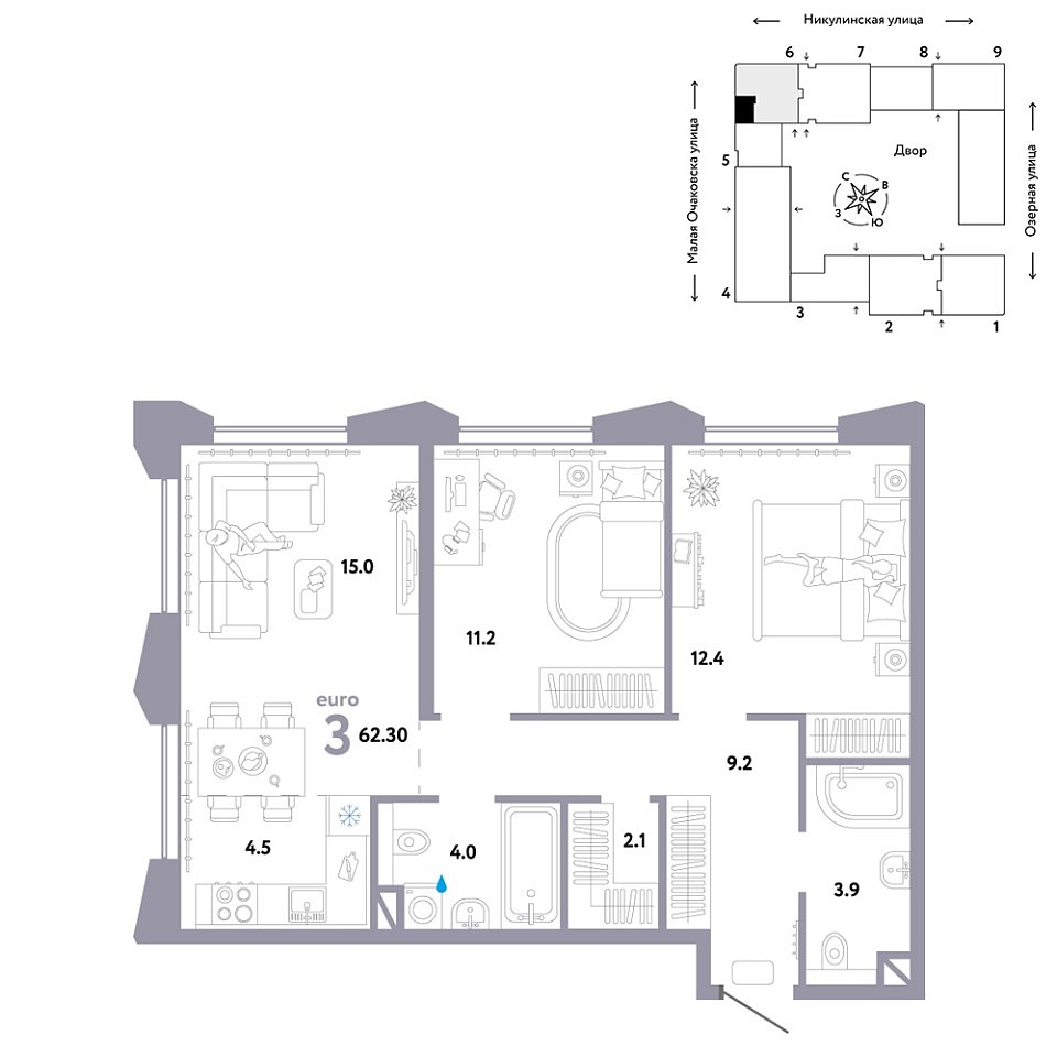 Купить новую трехкомнатную квартиру 62.3 м² на 25/30 этаже в ЖК «Страна.Озёрная», г. Тюмень за 42120000 ₽ | Агентство недвижимости «Вплюсе.Топ» — Недвижимость России