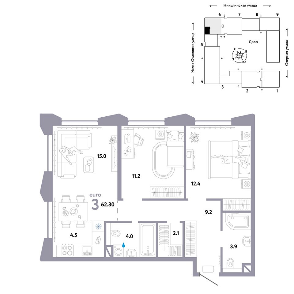 Купить новую трехкомнатную квартиру 62.3 м² на 27/30 этаже в ЖК «Страна.Озёрная», г. Тюмень за 39586667 ₽ | Агентство недвижимости «Вплюсе.Топ» — Недвижимость России