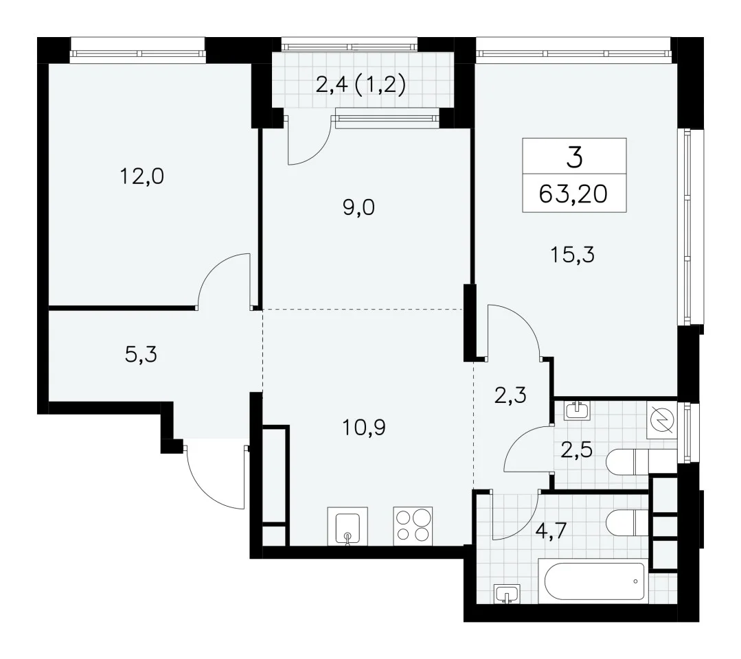 Площадь (общ/жил/кух), м2: 70.3/—/12.5