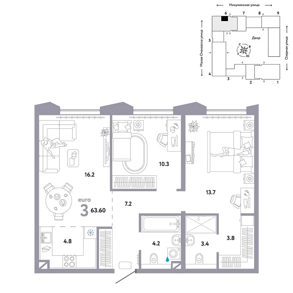 Купить новую трехкомнатную квартиру 63.6 м² на 30/30 этаже в ЖК «Страна.Озёрная», г. Тюмень за 53720000 ₽ | Агентство недвижимости «Вплюсе.Топ» — Недвижимость России