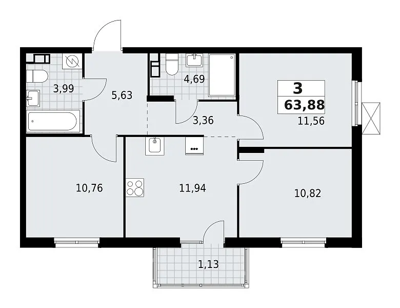 Площадь (общ/жил/кух), м2: 63.88/—/11.94
