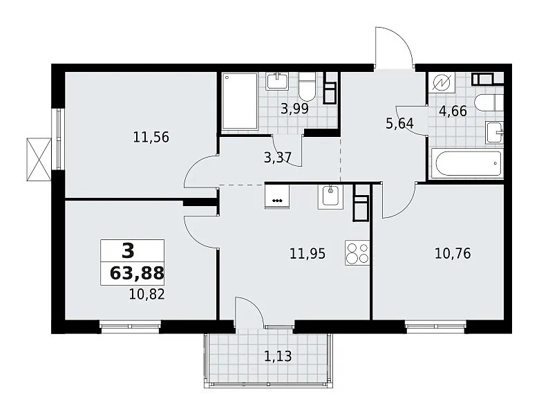 Купить новую трехкомнатную квартиру 63.88 м² на 5/9 этаже в ЖК «А101 Лаголово», г. Тюмень за 9929507 ₽ | Агентство недвижимости «Вплюсе.Топ» — Недвижимость России