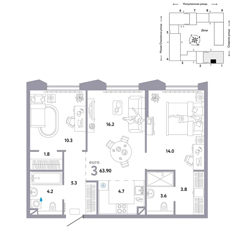 Купить новую трехкомнатную квартиру 63.9 м² на 30/30 этаже в ЖК «Страна.Озёрная», г. Тюмень за 53453333 ₽ | Агентство недвижимости «Вплюсе.Топ» — Недвижимость России