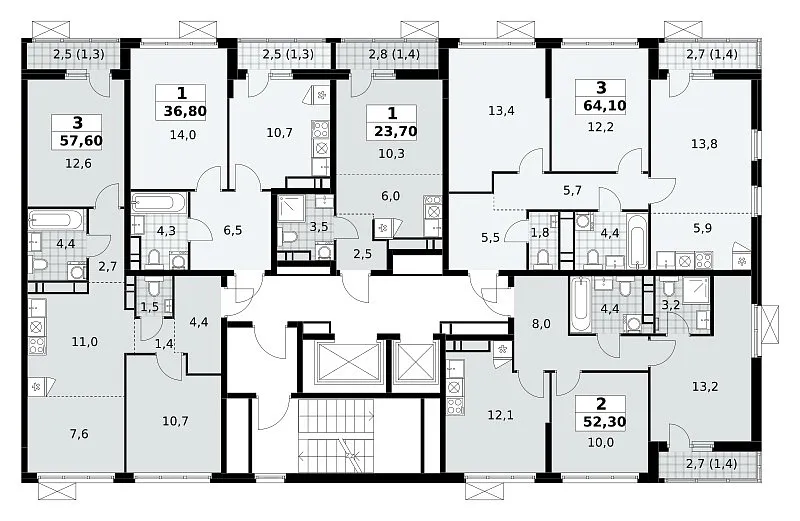 Общая площадь 64.1 м2
