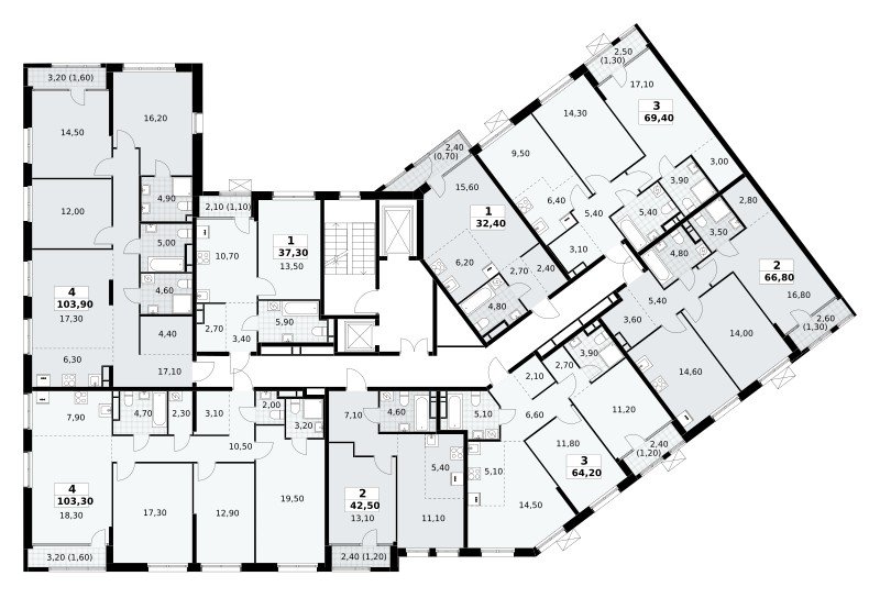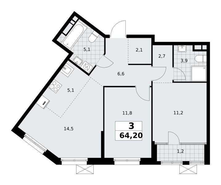 Площадь (общ/жил/кух), м2: 64.3/—/5.1