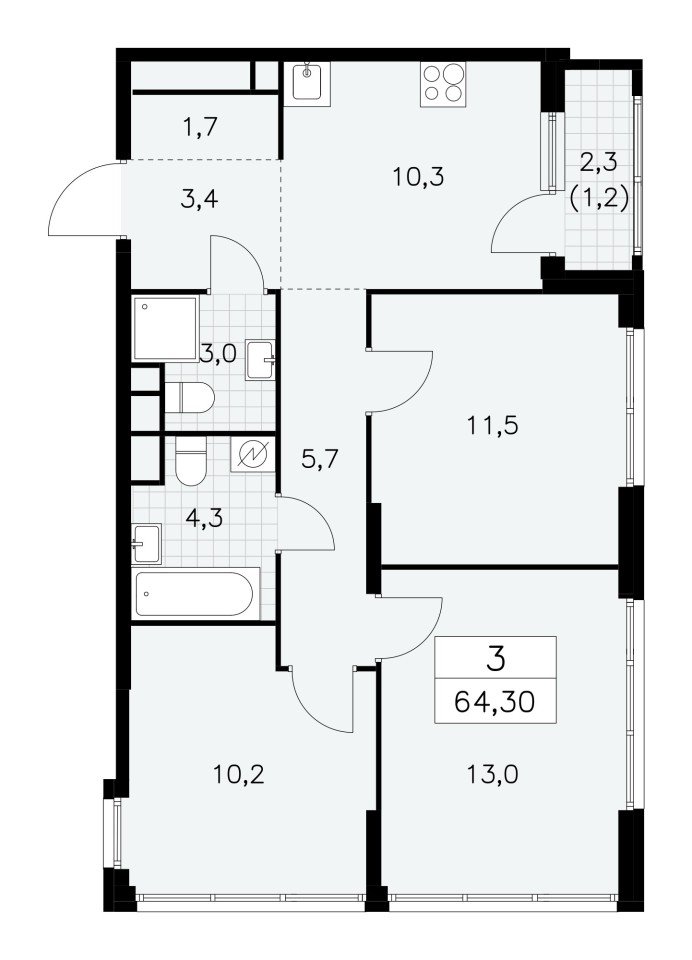 Купить новую трехкомнатную квартиру 64.3 м² на 30/30 этаже в ЖК «Южные сады», г. Тюмень за 25410717 ₽ | Агентство недвижимости «Вплюсе.Топ» — Агентство недвижимости "Вплюсе.Топ"