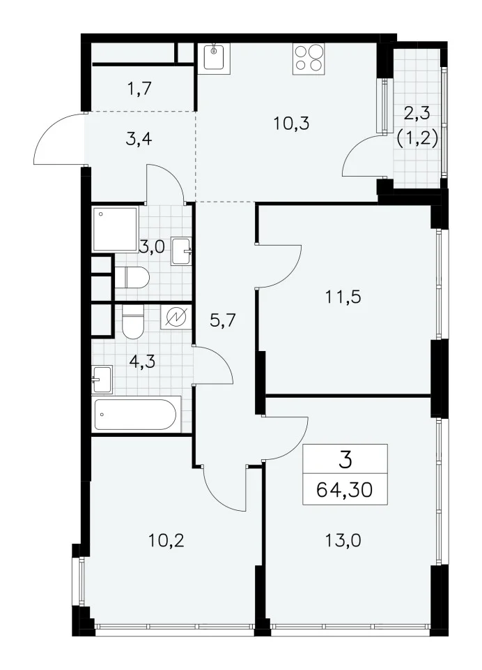 Купить новую трехкомнатную квартиру 64.3 м² на 30/30 этаже в ЖК «Южные сады», г. Тюмень за 28066307 ₽ | Агентство недвижимости «Вплюсе.Топ» — Недвижимость России