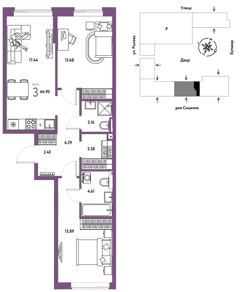 Купить новую трехкомнатную квартиру 64.9 м² на 5/24 этаже в ЖК «Остров-сад», г. Тюмень за 10510870 ₽ | Агентство недвижимости «Вплюсе.Топ» — Агентство недвижимости "Вплюсе.Топ"