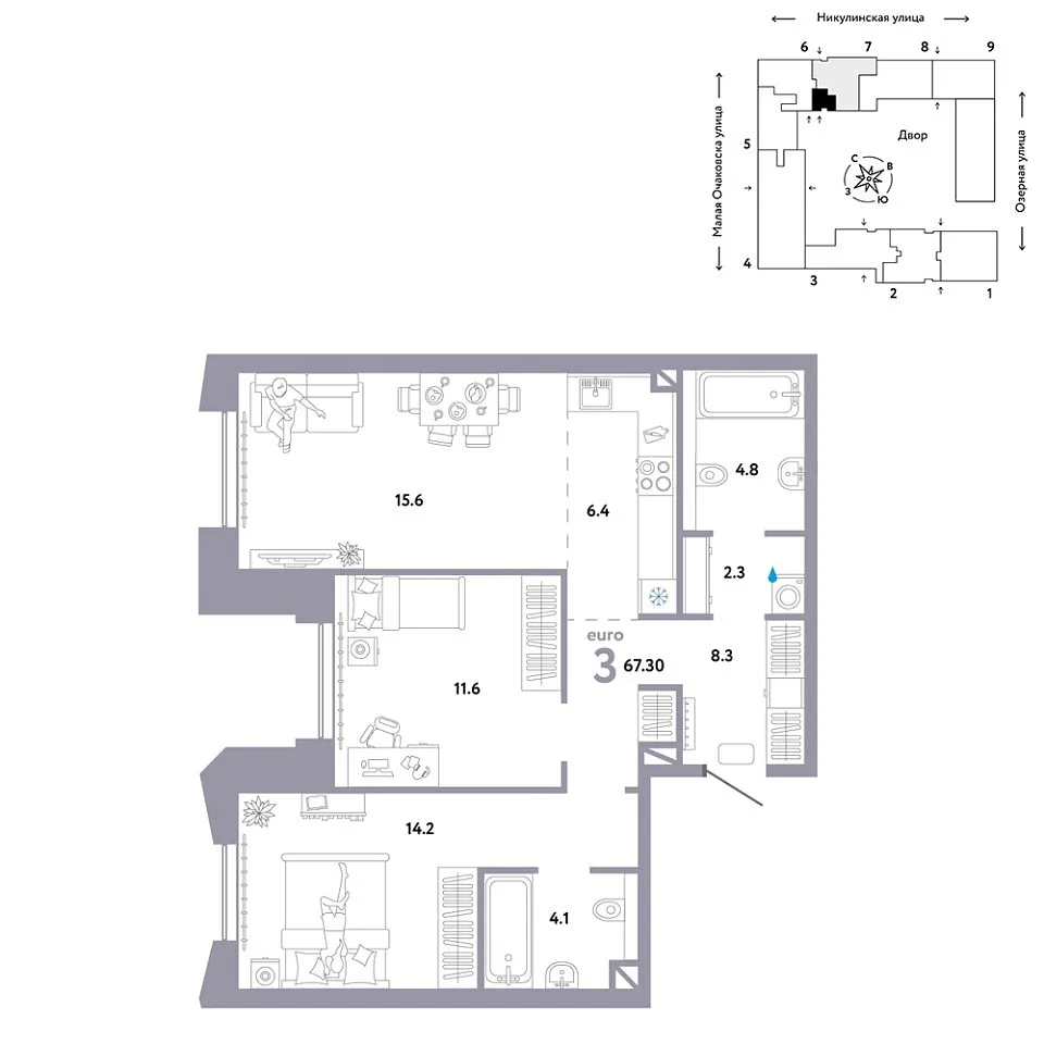 Купить новую трехкомнатную квартиру 67.3 м² на 9/30 этаже в ЖК «Страна.Озёрная», г. Тюмень за 43586667 ₽ | Агентство недвижимости «Вплюсе.Топ» — Недвижимость России