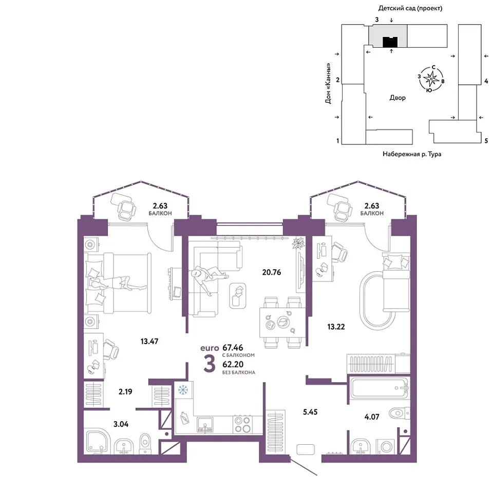 Купить новую трехкомнатную квартиру 67.46 м² на 12/25 этаже в ЖК «Европейский берег 2.0», г. Тюмень за 15777778 ₽ | Агентство недвижимости «Вплюсе.Топ» — Недвижимость России