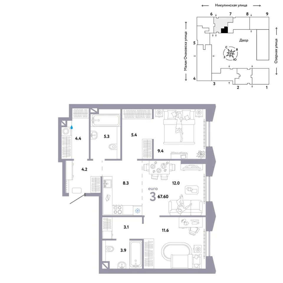 Купить новую трехкомнатную квартиру 67.6 м² на 7/30 этаже в ЖК «Страна.Озёрная», г. Тюмень за 29752941 ₽ | Агентство недвижимости «Вплюсе.Топ» — Недвижимость России