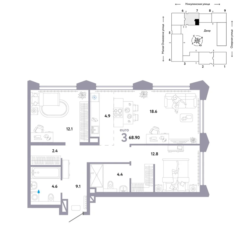Купить новую трехкомнатную квартиру 68.9 м² на 23/30 этаже в ЖК «Страна.Озёрная», г. Тюмень за 38386667 ₽ | Агентство недвижимости «Вплюсе.Топ» — Недвижимость России