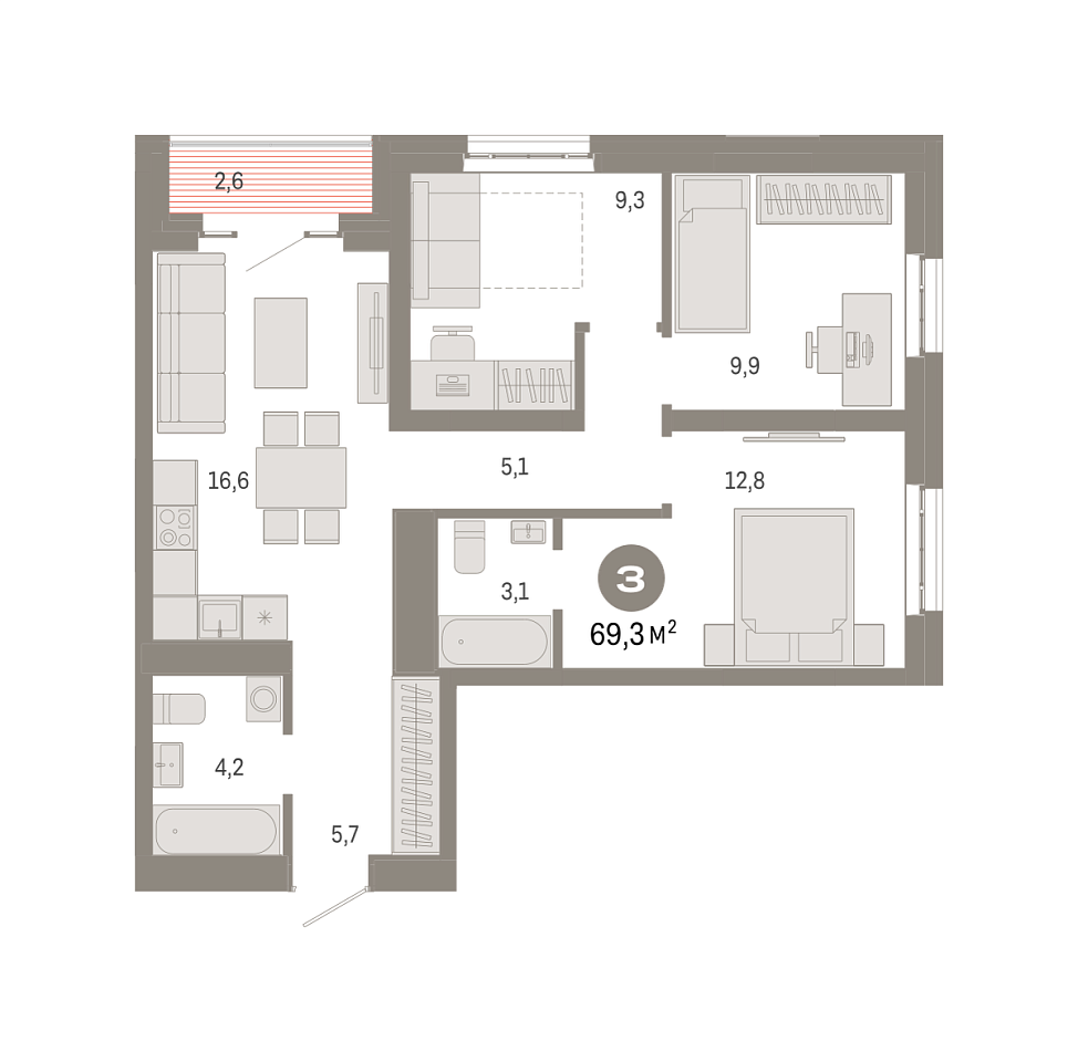 Купить новую трехкомнатную квартиру 69.3 м² на 13/31 этаже в ЖК «Квартал «Метроном»», г. Тюмень за 26580000 ₽ | Агентство недвижимости «Вплюсе.Топ» — Недвижимость России