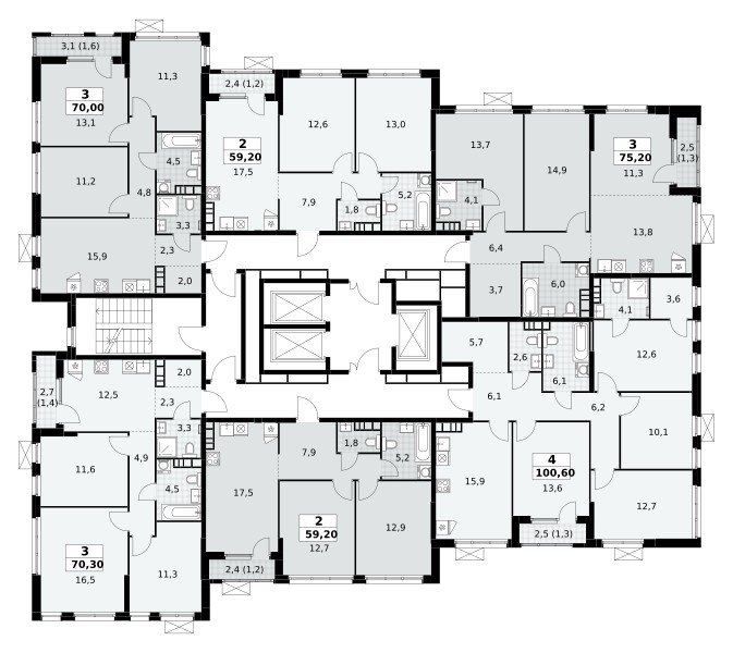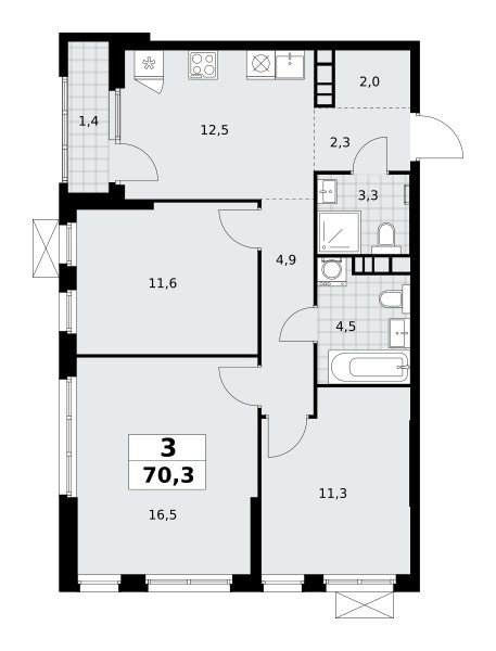 Площадь (общ/жил/кух), м2: 70.3/—/12.5
